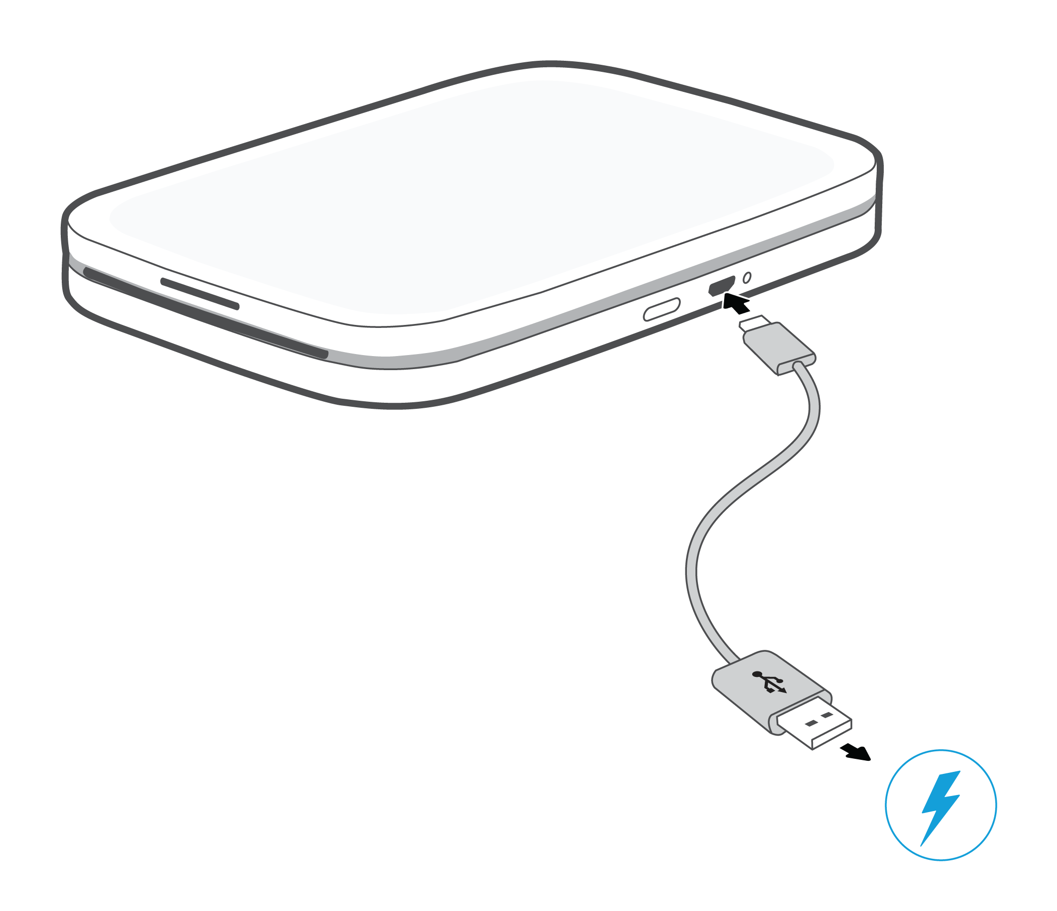 Connect the USB cable to the printer and a USB power supply.